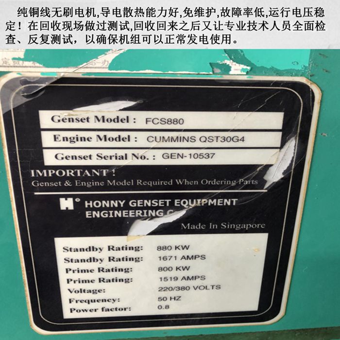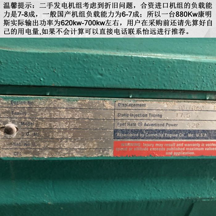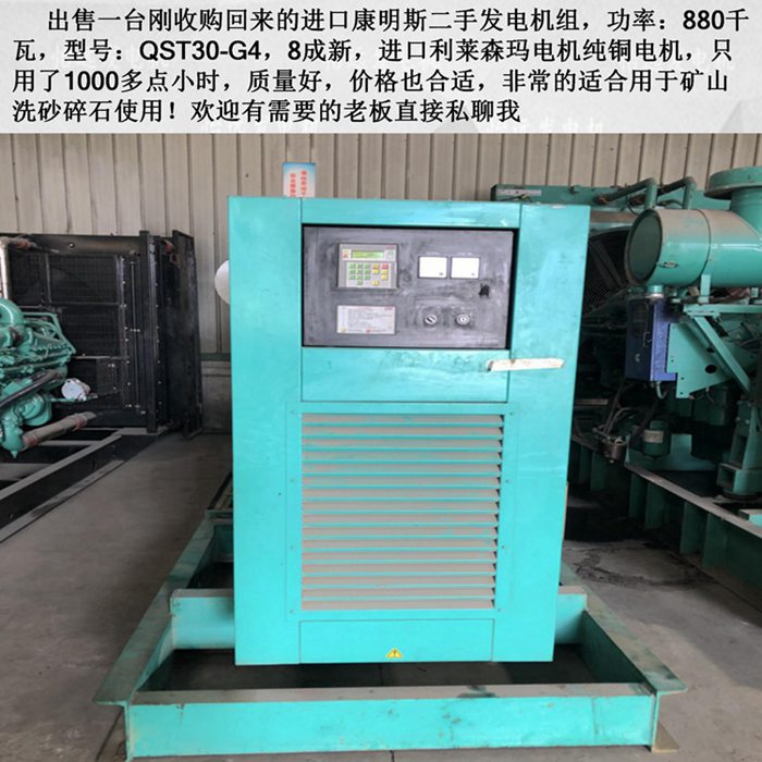 進(jìn)口880千瓦康明斯二手發(fā)電機(jī)組轉(zhuǎn)讓 現(xiàn)貨出售一臺(tái)工廠備用進(jìn)口二手發(fā)電機(jī)組,880千瓦,型號(hào):QST30-G4,8成新,進(jìn)口利萊森瑪電機(jī)純銅電機(jī),只用了1000多點(diǎn)小時(shí),價(jià)格也合適,非常的適合用于礦山洗砂碎石使用!歡迎有需要的老板直接來(lái)電咨詢(xún):13751213841